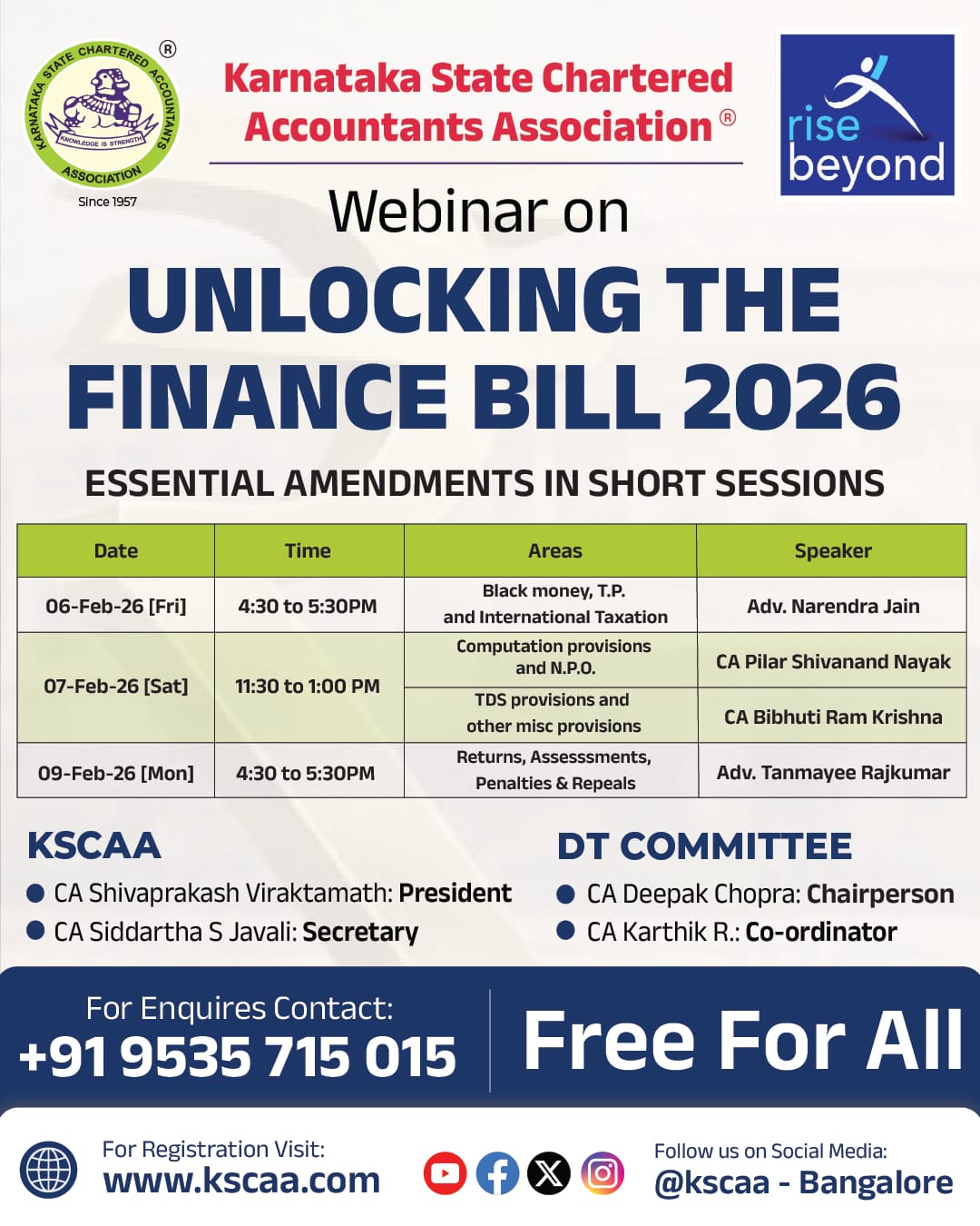 Webinar Series on the Finance Bill, 2026 | 06th, 07th & 09th February 0.00 Prices include all taxes